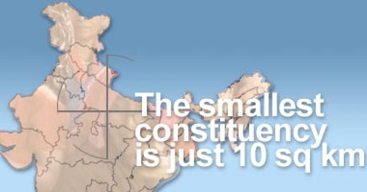 Delhi Sadar (28 sq km), Mumbai South Central (18 sq km), Mumbai South (13 sq km), Calcutta North West (13 sq km) and Chandni Chowk (10 sq km).