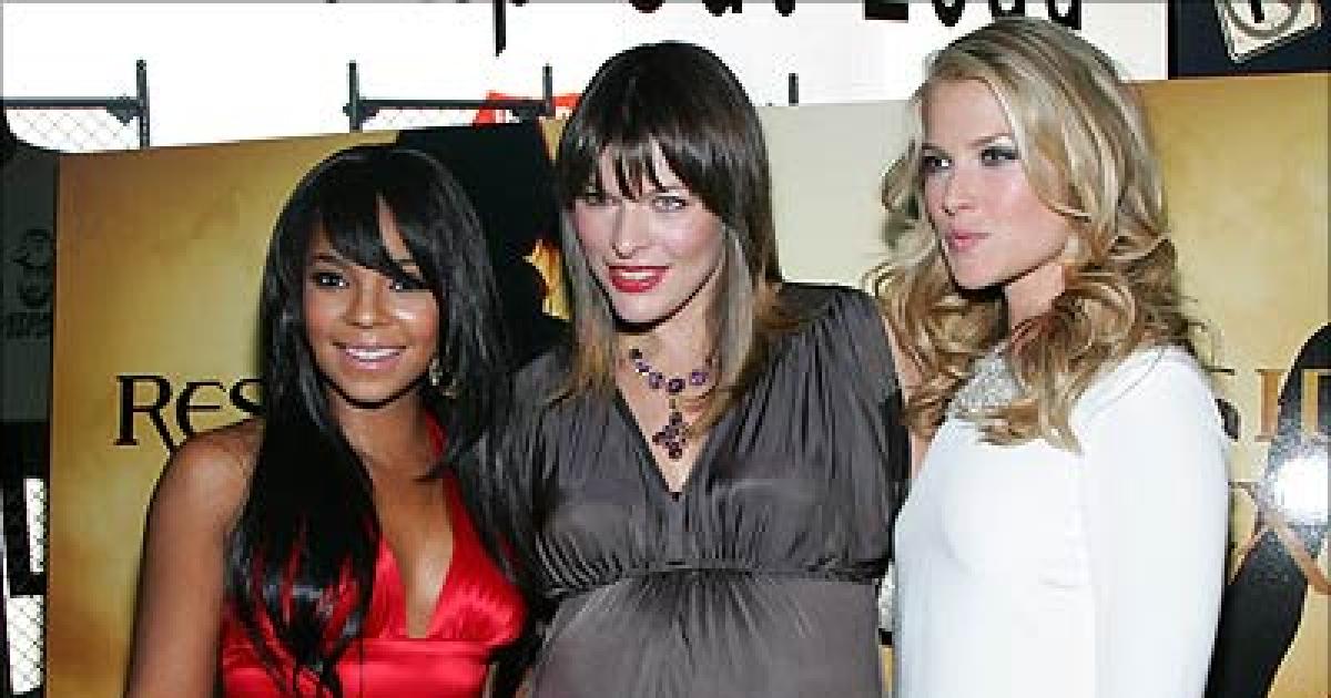 A visibly pregnant Milla Jovovich (centre), the star of the film along with the rest of the cast -- Oded Fehr, singer Ashanti (in red), Mike Epps, Matthew Marsden, Spencer Locke, and Ali Larter (in white) landed at the Planet Hollywood Resort & Casino on September 20 for the film's screening.