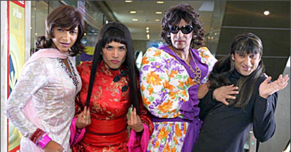 Apparently, there is a scene in the film where the four men had to dress as women to enter a mall, as only ladies were allowed to enter it, the day being Women's Day. And the four sportingly took up the challenge.