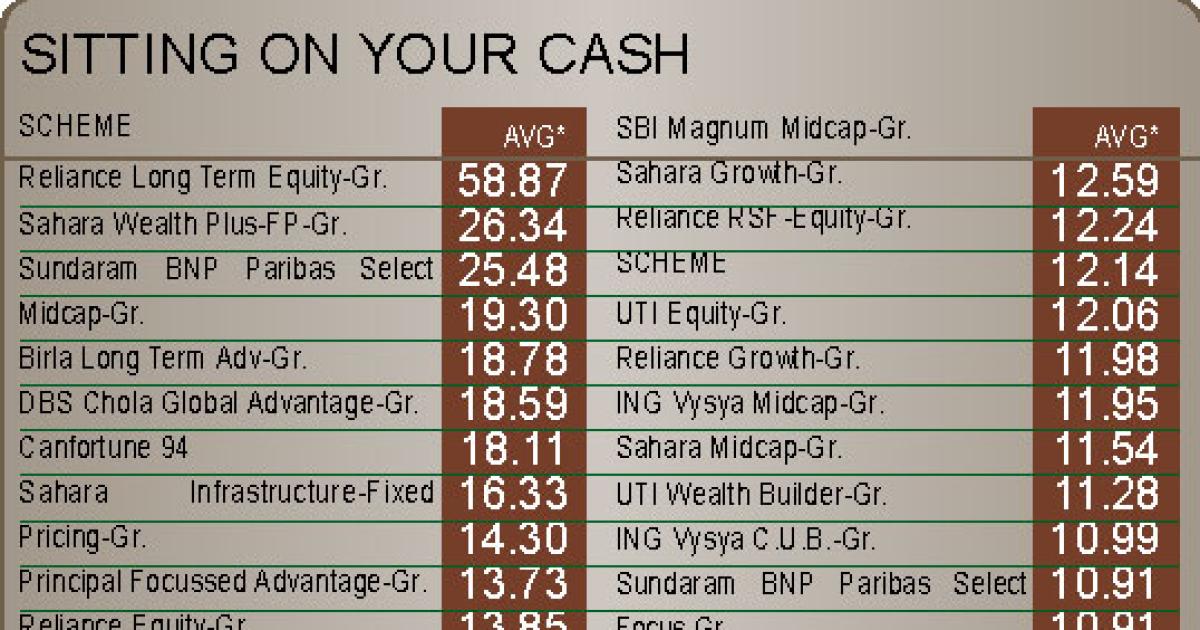 What does it mean? For fund managers, moving into cash is a favoured strategy to combat volatile markets. However, the risk in using cash calls arises when a fund manager books profits too early or misses out on a rally by not foreseeing an upswing.