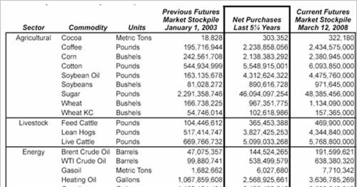 The following table captures the resultant increase in the prices of commodity futures prices increases between 2003 and 2008.