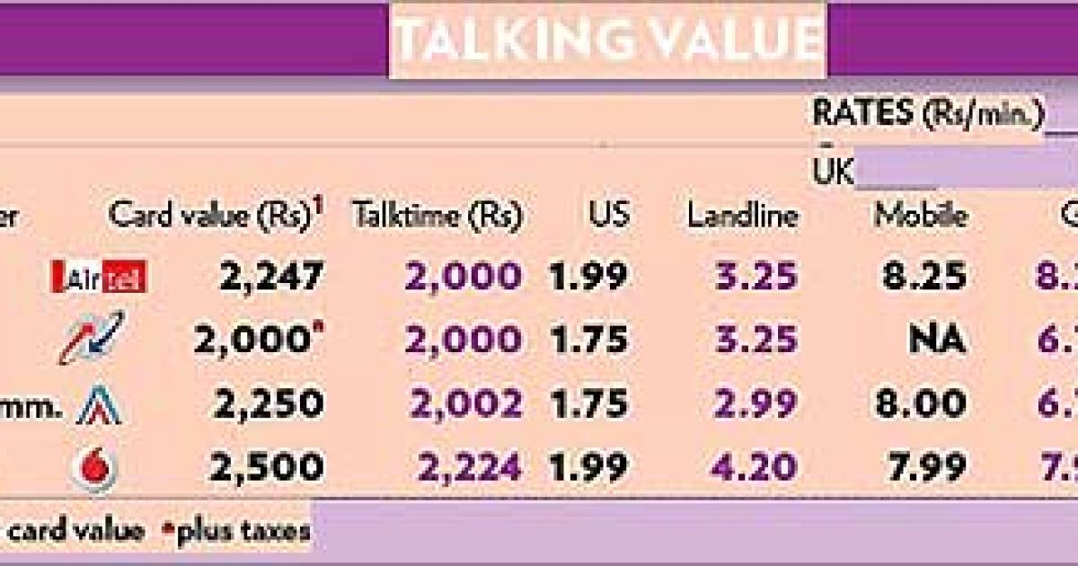 The calls are charged to a separate account. Higher the card denomination, more is the talktime and lower the rates (see Talking Value). For example, a call to the US would cost Rs 1.75-1.99 a minute through a calling card, and as much as Rs 6.40 per minute on the mobile phone.