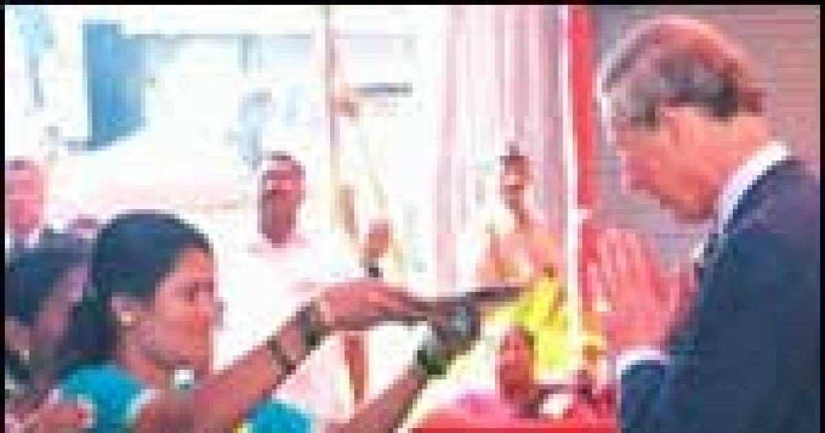 An aarti and a huge south Indian mallai (garland), which would have made Tamil Nadu politicians think twice, greeted the Prince of Wales. Despite a noticeable stoop, he did manage to keep it on for some time with a smile to boot.