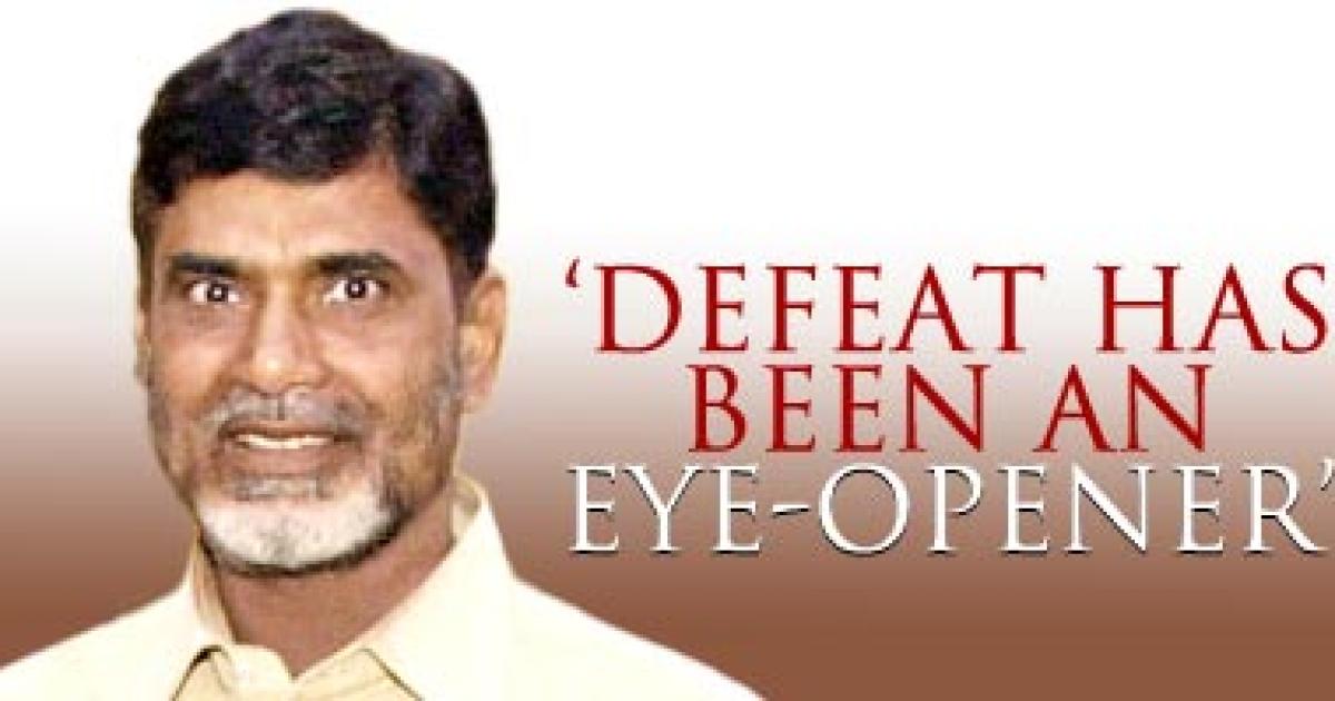 It has not been a shock. It has been an eye-opener. Today, I am happy that it was me who put Hyderabad and Andhra Pradesh on the international map. If foreign investors and IT companies are queuing up in Hyderabad, it is because of the hard work and vision of my government. I am not at all worried that the election has gone wrong. I am continuously analysing what went wrong and preparing the party cadres for the political battles ahead. Defeat for me is an opportunity. Generally, when there is a debacle, people get worried. But I do not get disheartened in defeat. I want to take this crisis, this defeat as an opportunity. I want to rebuild the party. I want to inculcate values in the party and create an efficient leadership.