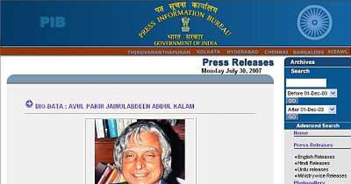 Pardon us for asking the question, but the official government website of the Press Information Bureau (www.pib.nic.in) still has the bio-data and photograph of Avul Pakir Jainulabdeen Abdul Kalam under the heading Profile: President of India even on Monday morning.