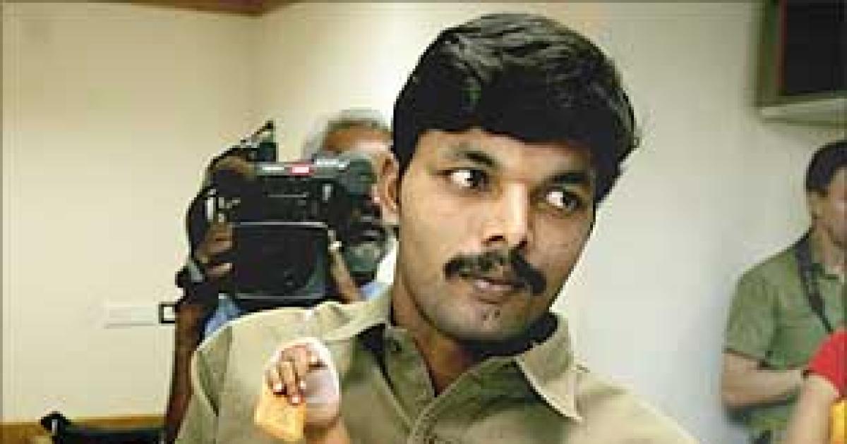 Image: Two-year-old Lakshmi is cradled in the arms of her father Shambhu at the Sparsh Hospital in Bangalore.