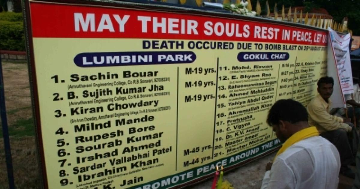 The board had the names of all the 42 victims of the twin bomb blasts at the park and Gokul Chat.