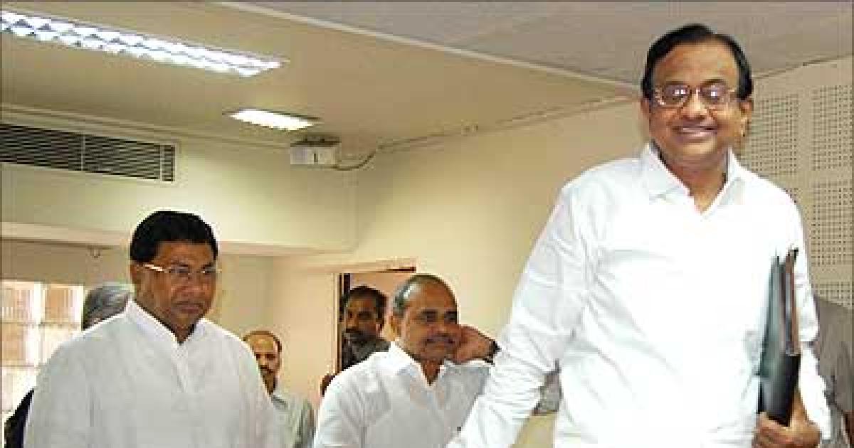 Image: Home Minister P chidambaram after reviewing a security meeting with Andhra Pradesh Chief Minister Dr Y S Rajasekhar Reddy Hyderabad secretariat on Friday.