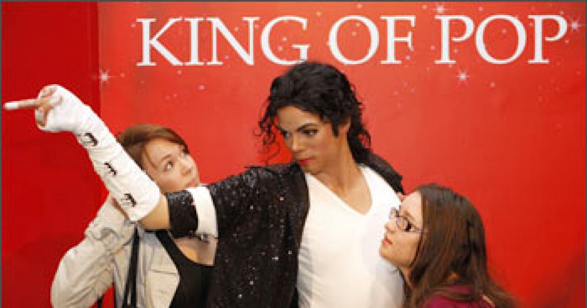 Image: Fans pose with a new waxwork figure of Michael Jackson depicted from his 'This is It' tour, displayed at Madame Tussauds in London. (Photograph: Stephen Hird/Reuters)