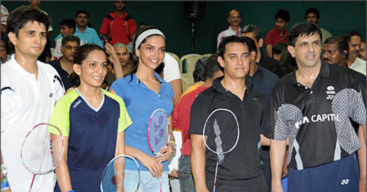 Deepika was paired up with her star father Prakash Padukone while Aamir paired up with top player Aparna Popat.