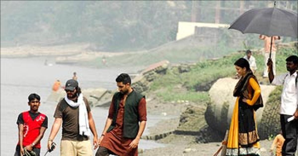 In the picture: Abhishek Bachchan (third from left) and Aishwarya Rai stand on the banks of the river Ganges during the shooting of Raavan on the outskirts of Kolkata. Photograph: Parth Sanyal/ Reuters