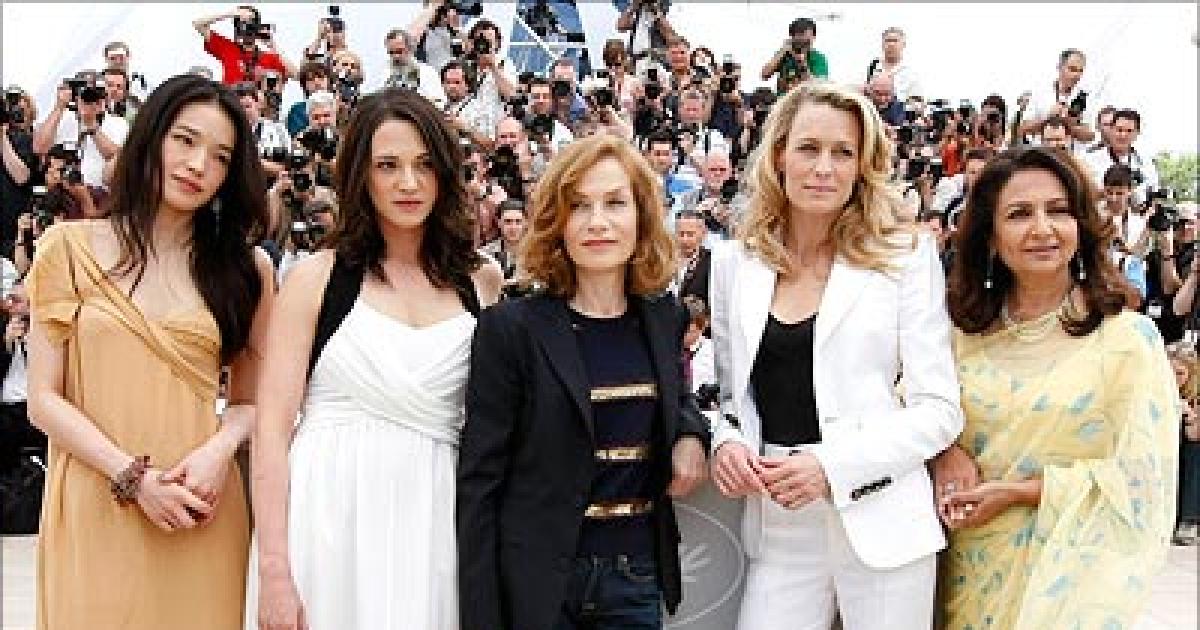 In the picture: Taiwan actress Shu Qi, Italian actress Asia Argento, jury president and French actress Isabelle Huppert, American actress Robin Wright Penn and Sharmila Tagore. Photograph: Eric Gaillard / Reuters