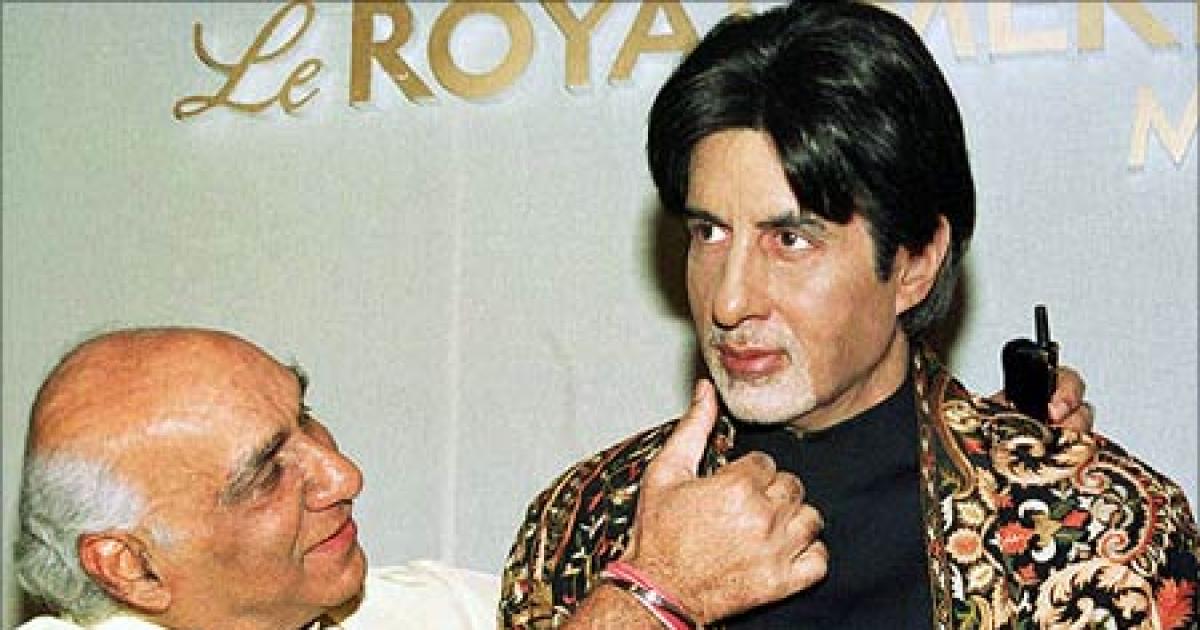 In the picture: Yash Chopra takes a closer look at Amitabh Bachchan's wax figure. Photograph: Str Old/ Reuters.