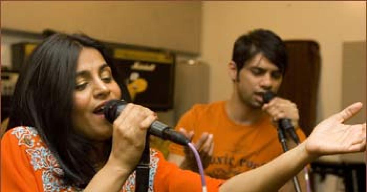 Falu's band draws from Indian classical, alternative rock, contemporary pop, and electronic styles, she says, to create "a tight mix of East and West, of ancient and modern.