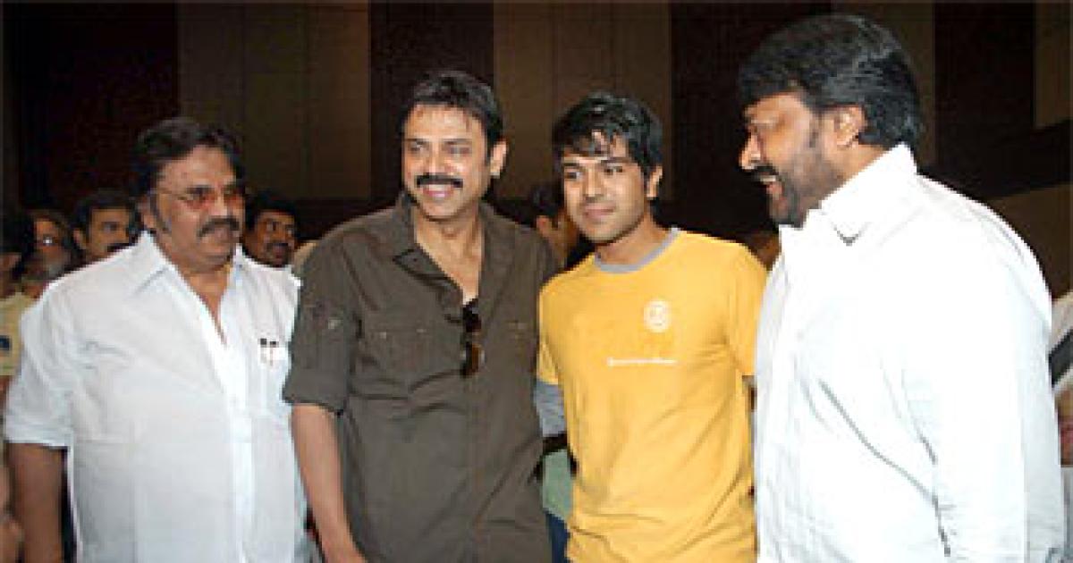 Image: Dasari Narayana Rao, Venkatesh, Ram Charan Teja and Chiranjeevi.