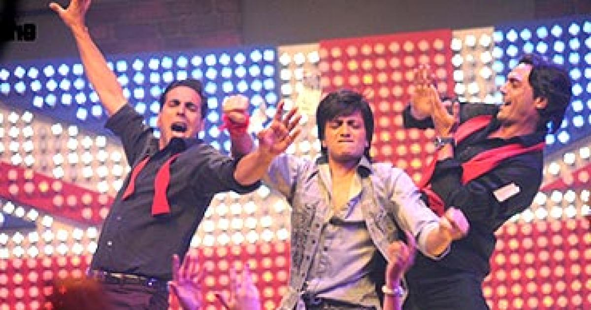 Image: Akshay Kumar, Riteish Deshmukh and Arjun Rampal in a scene from Housefull.