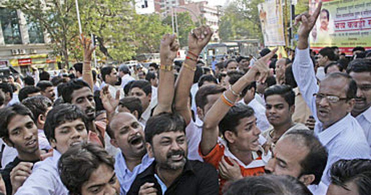 Image: Shiv Sena activists shout slogans in Mumbai on Friday. Photograph: Reuters