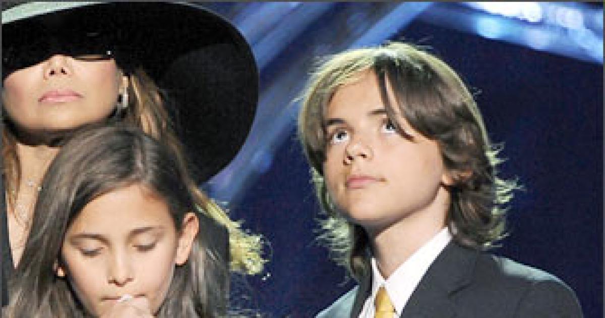 Image: Michael Jackson's children from left: Paris Jackson, Prince Michael Jackson II (also known as Blanket) and Prince Michael Jackson I stand with their aunt LaToya Jackson (far left) at a memorial service