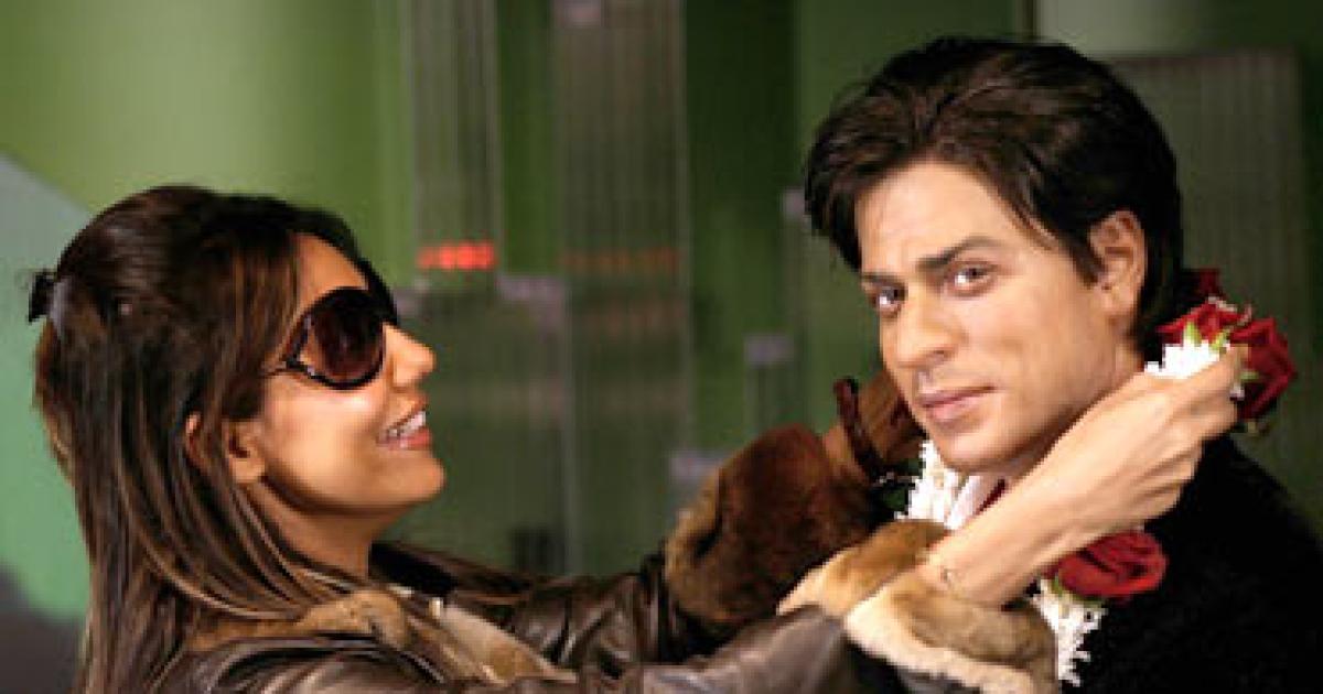 Image: An archive picture of Gauri Khan standing next to the waxwork model of her husband Shah Rukh, at Madame Tussauds in London. Photograph: Kieran Doherty/Reuters