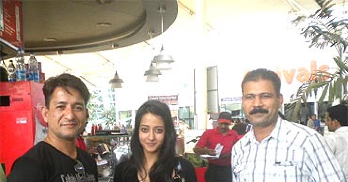 Reader Lokendra Singh (right) and his friend Ajay (left) met Raima Sen at the Chhatrapati Shivaji International Airport, Mumbai.