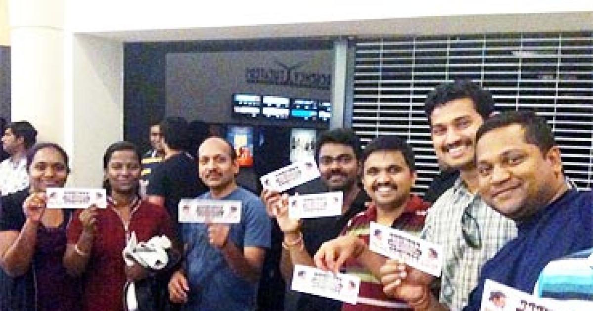 Reader Vadivel Ramasamy and friends from Denver, Colorado, watched the first day first show of Endhiran.