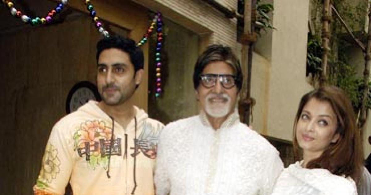 Bachchan posed for the cameras with son Abhishek and daughter-in-law Aishwarya on his birthday.