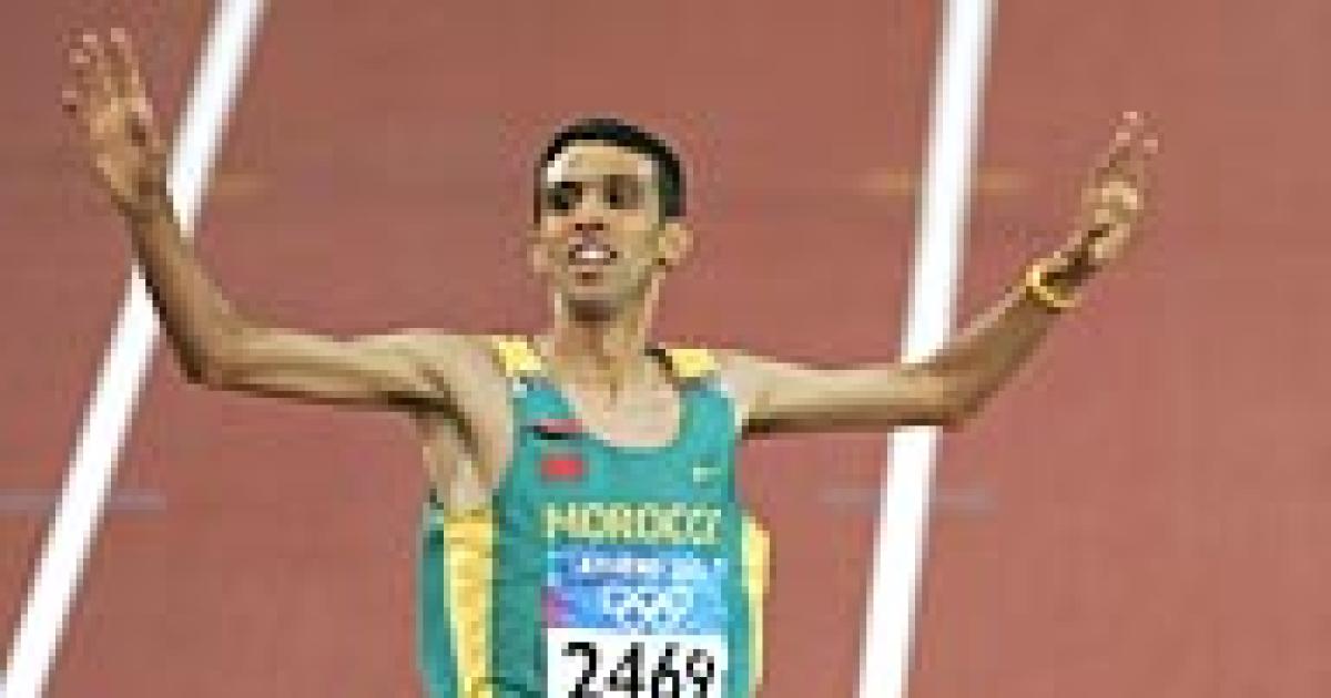 The Moroccan went clear in the final 30 metres and even had the luxury of easing up before raising two fingers, one for each of his Athens triumphs, as he crossed.