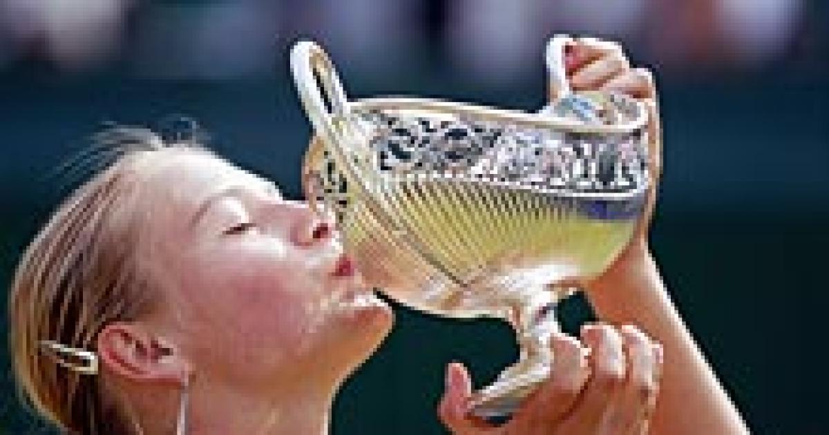 The two teenagers, who have a combined age of just over 33, battled for an hour and 44 minutes before third-seed Sharapova emerged victorious to collect her first title on grass.