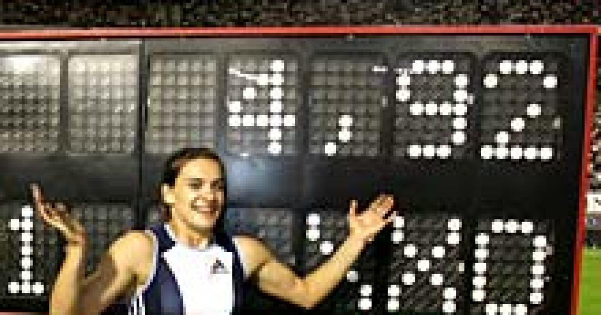 Russian Olympic champion Yelena Isinbayeva set a second world record of the night when she broke her own mark set in Athens. Isinbayeva succeeded with her third attempt at 4.92 metres, her seventh world record of the year.