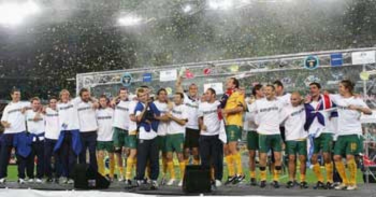 Striker John Aloisi scored the decisive penalty after goalkeeper Mark Schwarzer pulled off two brilliant saves to send the capacity crowd of 83,000 into wild celebrations.