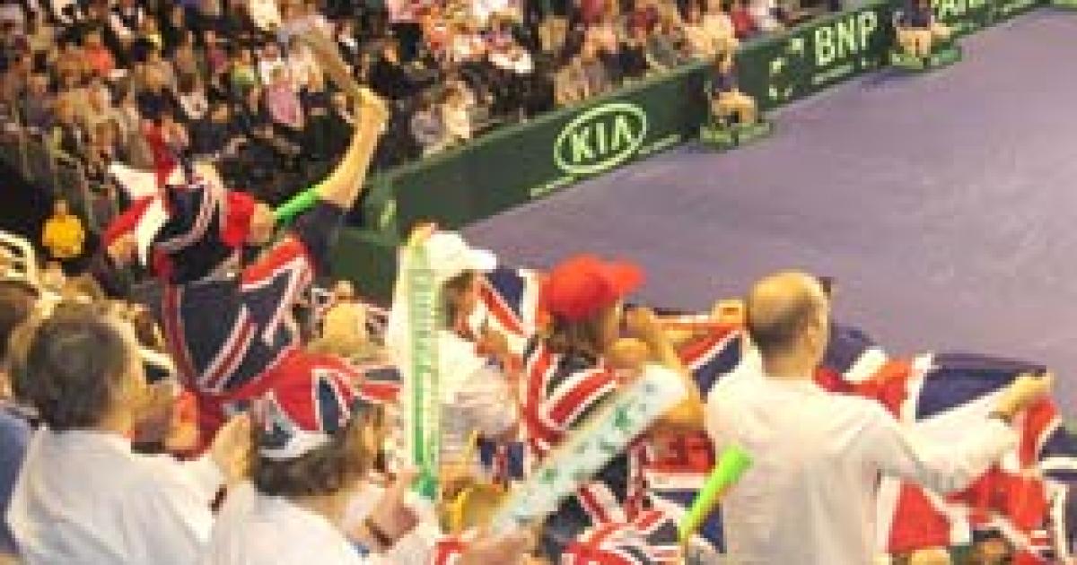 I joined a near capacity crowd of flag-waving Brits in goading Greg Rusedski on in the indoor court as he lost the first set. Serbia were already up 2-1 after having beaten Murray and Rusedski in the doubles tie the previous day.