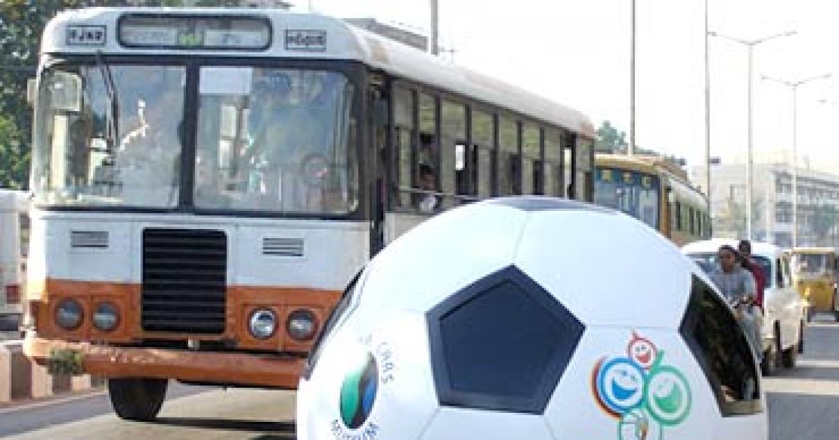 Kanyaboyina Sudhakar, founder of the world's first museum for handmade cars, drives through the streets of Hyderabad on Friday in a specially-designed football-shaped car.