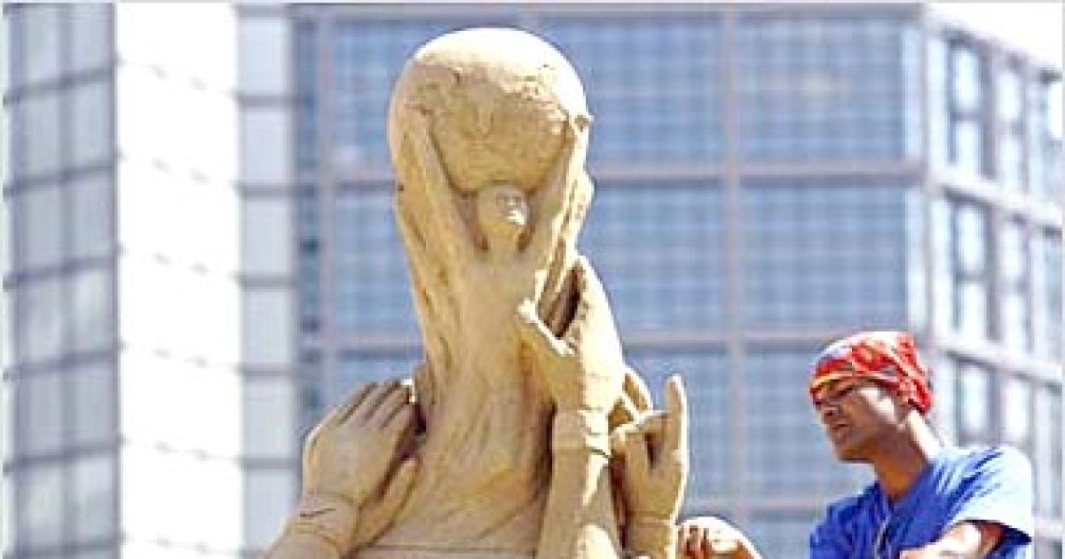 The sand artist, who last year bagged the first prize at the Berlin event for his sculpture on Mahatma Gandhi with three monkeys, aims at focusing on world peace and health awareness this time, keeping in view the football World Cup, in Germany.