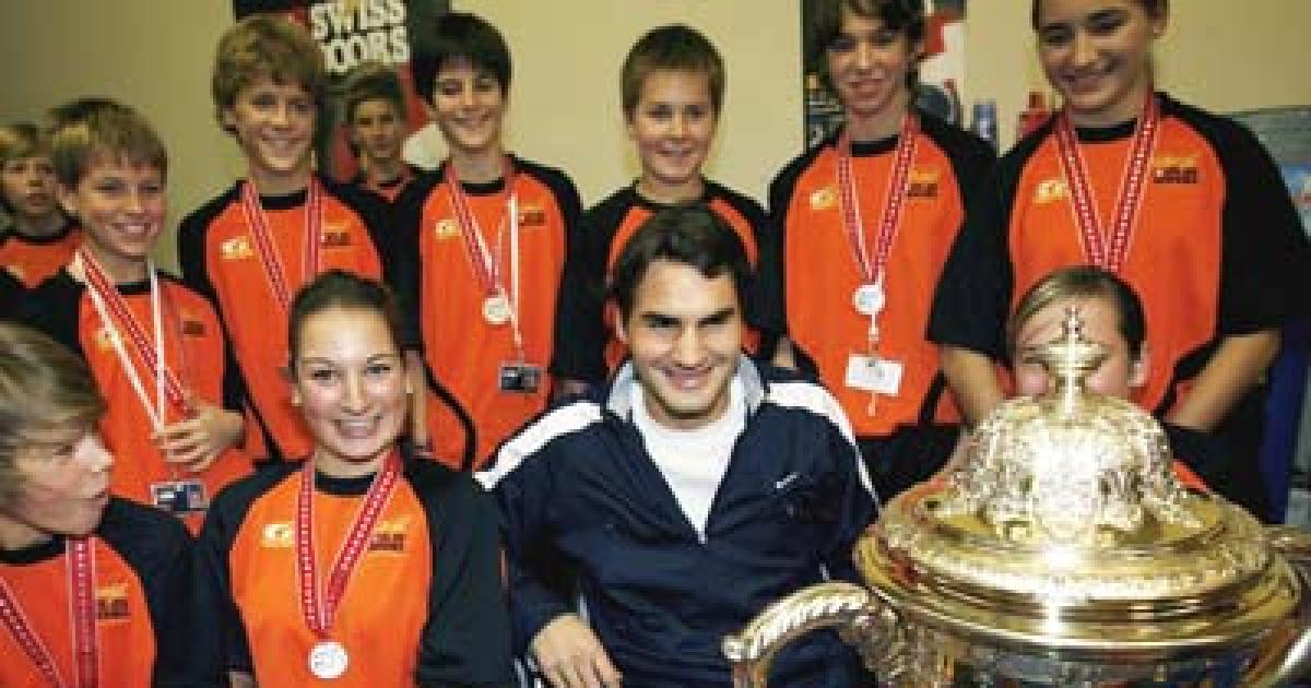 After defeating Chile's Fernando Gonzalez 6-3, 6-2, 7-6, the Swiss served pizza to the ball kids at his home tournament, where he was also a ball boy once.