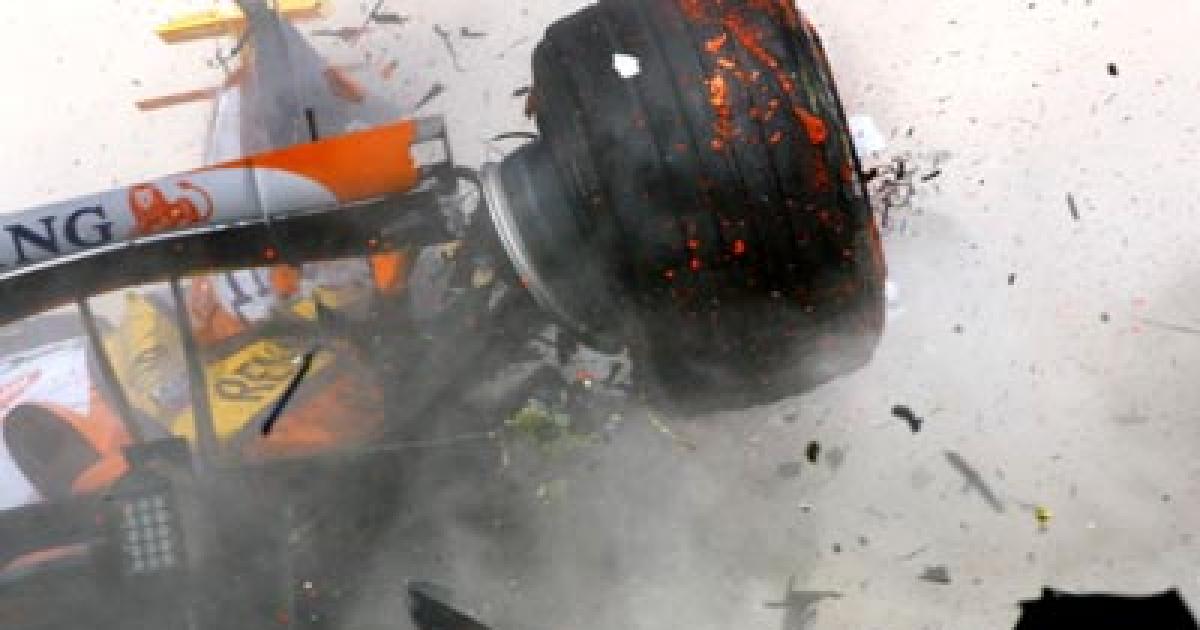 Renault rookie Heikki Kovalainen escaped unhurt from a 200kph crash in Formula One testing in Bahrain on Tuesday.