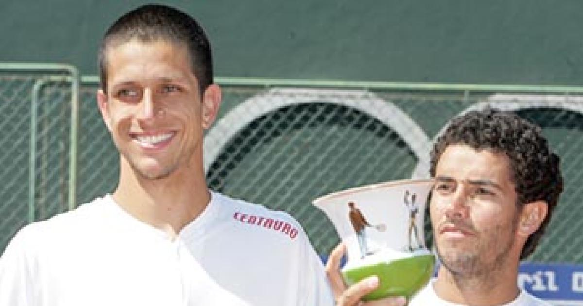 Image: Marcelo Melo and Andre Sa of Brasil display their trophies after winning the final against Martin Garcia and Sebastian Prieto of Argentina, at the Estoril Open in Lisbon on May 6, 2007.