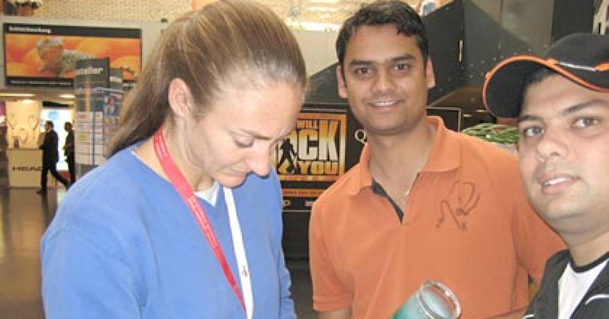 'Last year at the Zurich Open 2006, I met one of my favourite tennis players, Mary Pierce. Here is a photograph of her with me -- (Divya is wearing a cap and asking Piece to autograph a tennis ball) -- and my friend Aditya, who has taken her autograph on his T-shirt,' writes Divya.