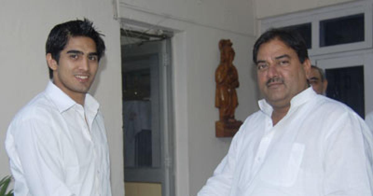 Photograph: Abhay Singh Chautala wishes Indian boxer Vijender Singh luck