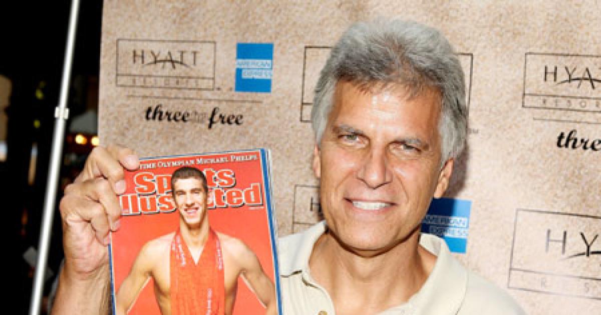 American swimming legend Mark Spitz posed with the new Sports Illustrated Magazine featuring Olympic champion swimmer Michael Phelps on the cover at the Hyatt Resorts 'Vacation Training Camp' competition at Grand Central Station in New York City on Wednesday.