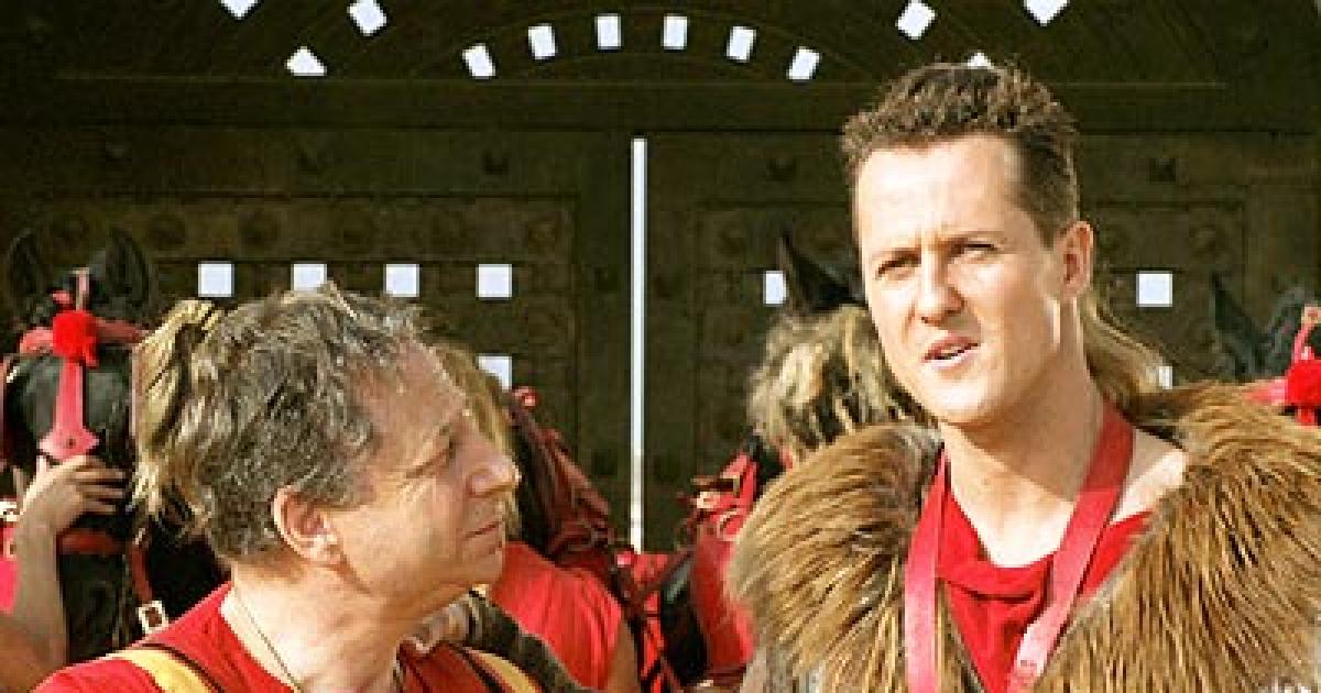 Footballer Zinedine Zidane stars as Numerodix, basketballer Tony Parker plays the Roman Tonus Parker, but what has us really excited is the charioteer and patron combination of seven-times Formula One world champion Michael Schumacher (who plays Schumix) and his former Ferrari boss Jean Todt.