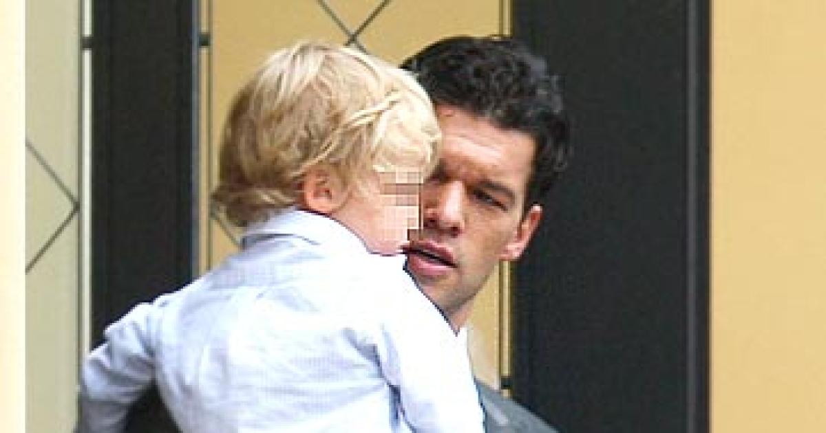 Image: Ballack and his son leave the Bayerischen Yacht Club after the wedding ceremony. Photograph: Johannes Simon/Getty Images