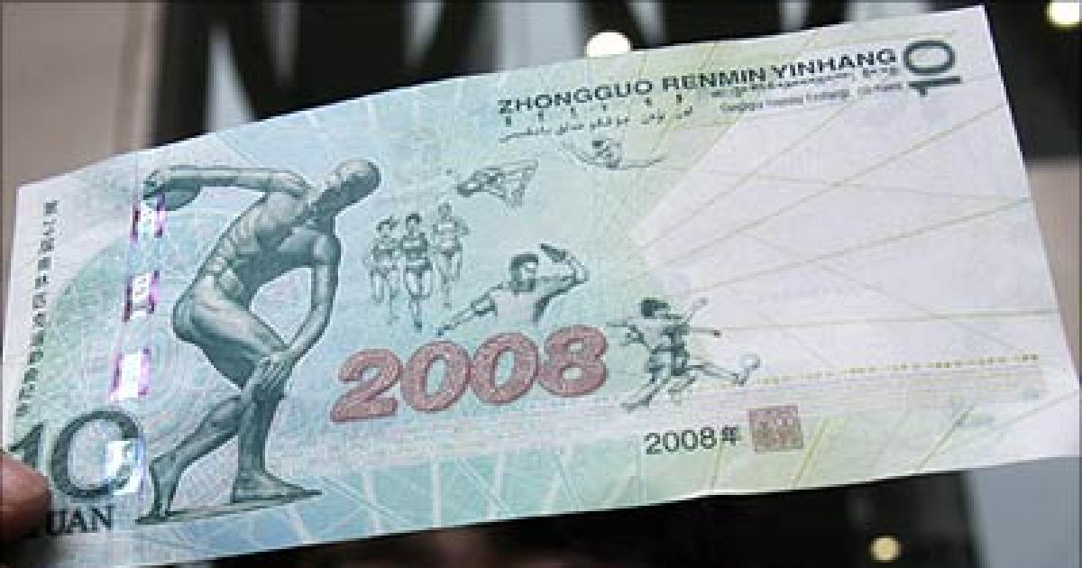 China's central bank also issued six million new 10 yuan ($1.46) notes to mark next month's Olympic Games.