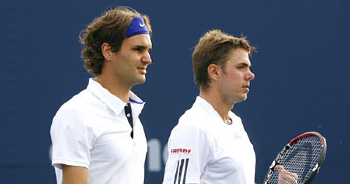 Roger Federer joined forces with fellow Swiss Stanislas Wawrinka to defeat French wild cards Julien Benneteau and Canadian Frederic Niemeyer 6-4, 6-4 in 62 minutes.