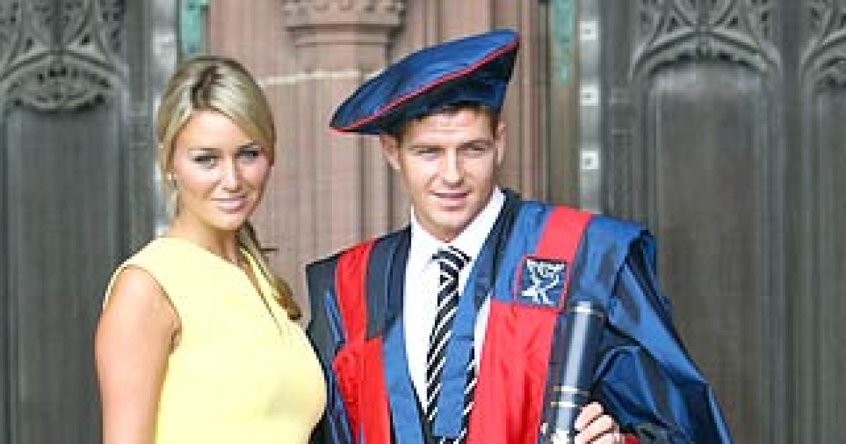 England and Liverpool football ace Steven Gerrard was conferred honorary fellowship by Liverpool John Moores University on Thursday.