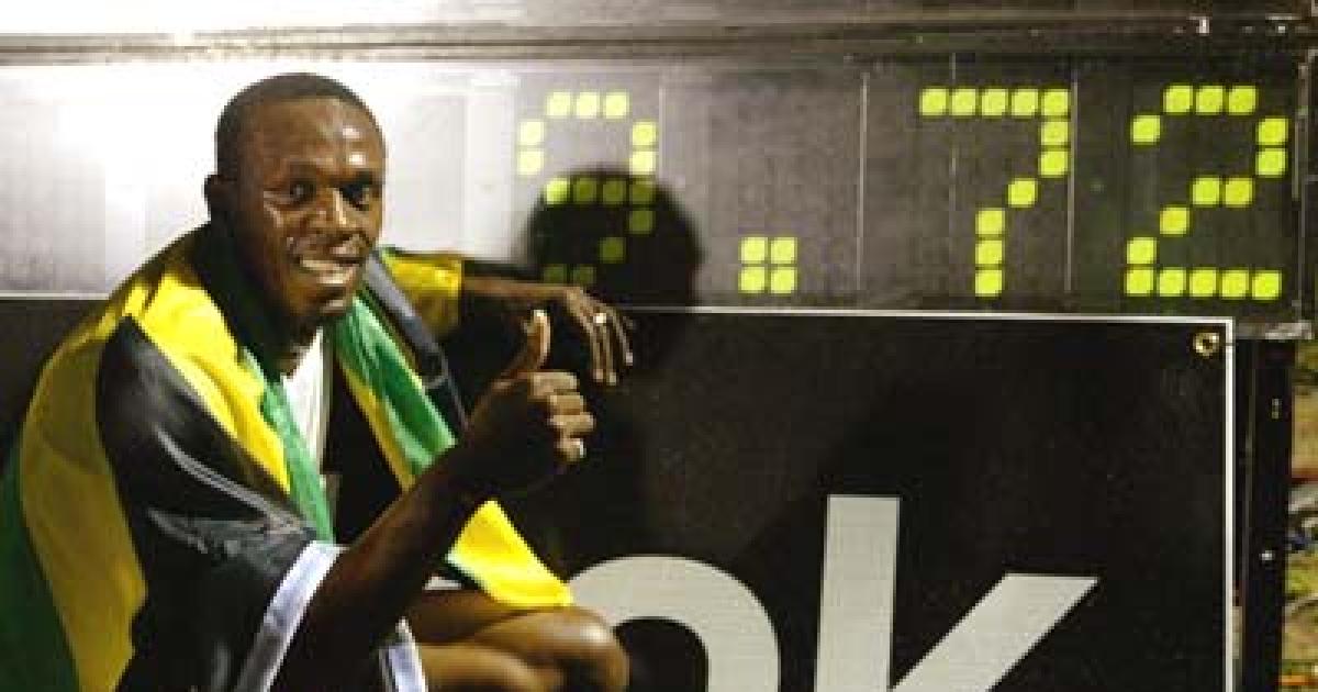 The 21-year-old Bolt announced he is a genuine force in track and field's blue ribband event by streaking home in a time of 9.72 seconds, breaking the previous record of 9.74 posted by compatriot Asafa Powell last September.
